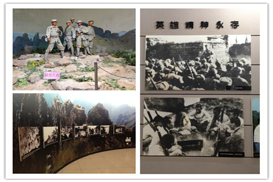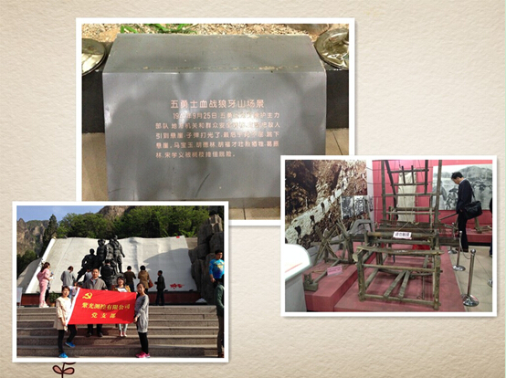 上山之前我們參觀了五勇士陳列館,館內(nèi)設(shè)有圖片,歷史資料,抗戰(zhàn)文物,戰(zhàn)斗場景,跟隨著講解員的解說生動再現(xiàn)了抗日軍民在黨的領(lǐng)導(dǎo)下,抗擊日寇,保家衛(wèi)國的英雄業(yè)績和悲壯歷史??粗患滟F的文物,一張張泛黃的照片,一段段震撼人心的事跡,此時(shí)多么絢爛的色彩、動人的歌喉、華麗的辭藻都無法形容我內(nèi)心的涌動。“風(fēng)蕭蕭兮易水寒,壯士一去兮不復(fù)返”。他們的生命雖然是短暫的,但是他們卻象流星一樣,用自己的生命劃出了一道道美麗的閃光,給人間留下了一首首千載傳頌、蕩氣回腸的正氣歌。他們以自己的英雄壯舉激勵(lì)著一代又一代中華民族的優(yōu)秀兒女為了全人類最崇高的理想而不懈地奮斗。