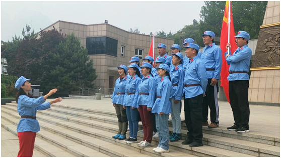 在紀念館前,黨員們唱起了《沒有共產黨就沒有新中國》這首創(chuàng)作于平西抗日根據地的歌曲。隨后,黨員們又演唱了以“創(chuàng)新,協調,綠色,開放,共享”五大發(fā)展理念為主題,以耳熟能詳的旋律為曲調,填詞自編的歌曲。歌聲代表著我們對革命先輩的敬意,以及對祖國美好未來的祝福。