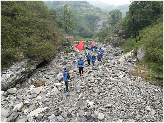 離開山村,黨員們分成“抗日”和“長征”兩支小隊,身體力行,感受世界上絕無僅有的長征旅程。途中我們遇到了陡滑的山路,